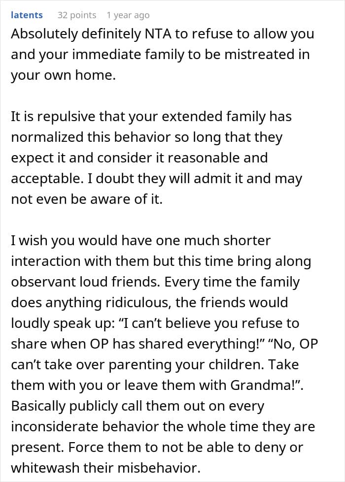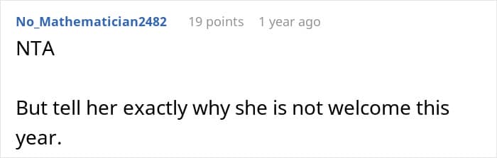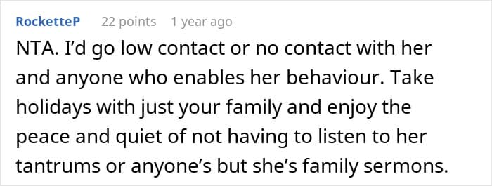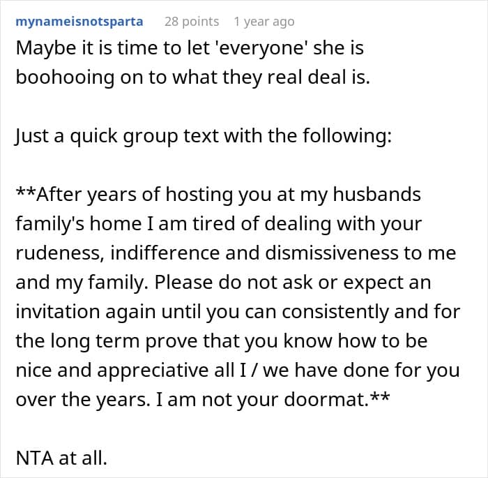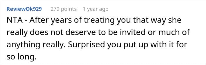 Readers unanimously agreed that the woman had every right to exclude her sister