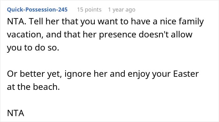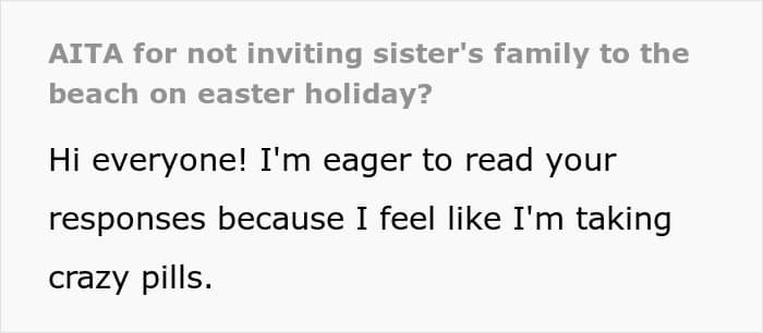We would love to hear your thoughts on this situation in the comments below, pandas. Do you think this woman was right to exclude her sister from the Easter trip? Feel free to weigh in. And then, you can find another We article discussing similar family dynamics right here.