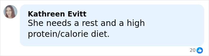 Several others echoed similar sentiments, suggesting she should “maybe have a nice home-cooked meal or three.”