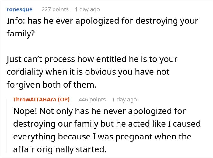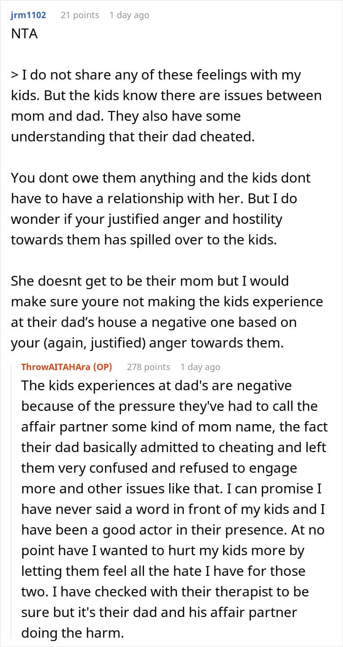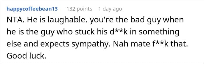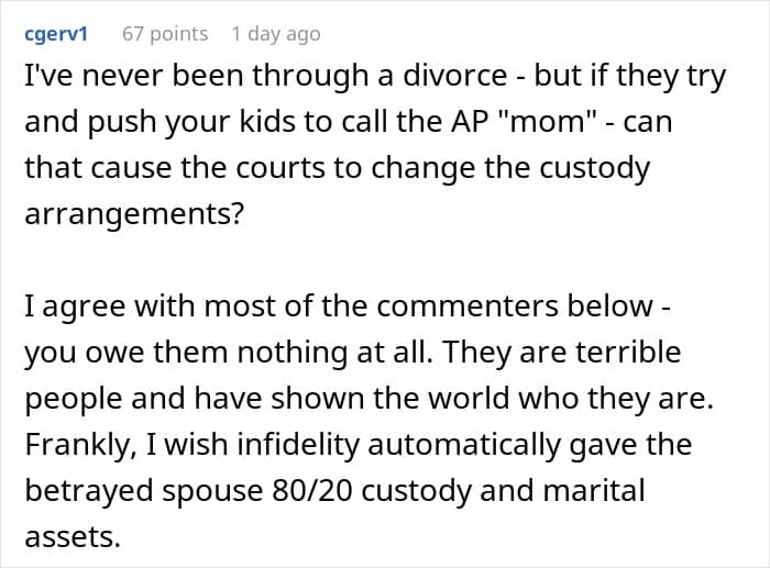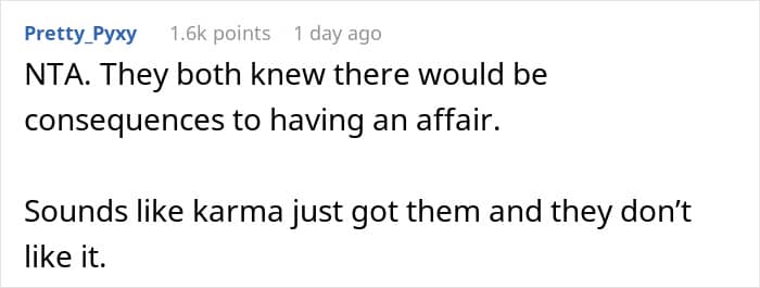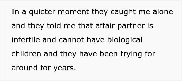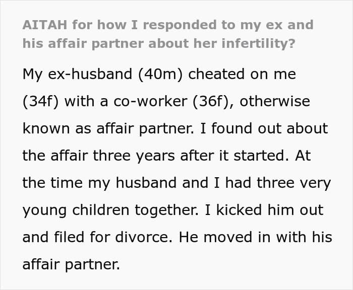 RELATED:A cheating couple asked the husband’s ex-wife for sympathy when they couldn’t conceive