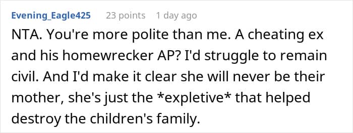 Commenters called out the delusional couple of cheaters: “She broke up your home and wrecked the life of those same children”