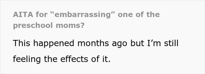 When the original poster (OP) finally got a break from her brutal schedule, she hoped preschool drop-offs would be a chance to bond with her daughter andmaybe connect with other parents. Instead, she walked straight into a judgment fest. The other moms had already decided she was an absent parent and a bad mom.