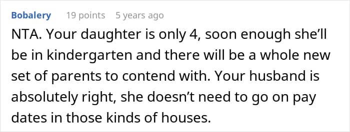 The aftermath? The moms backed off, but now they won’t let their kids play with her daughter outside preschool. She hates that her kid is caught in the crossfire and wonders if she owes an apology (even though the behavior she called out was totally toxic) but her husband says their kid’s better off without being exposed to nasty moms.