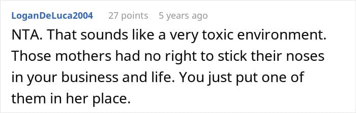 Finally, the woman snapped and let one of the judgy moms have it, but now she’s turned to an online community to ask if clapping back was a jerk move
