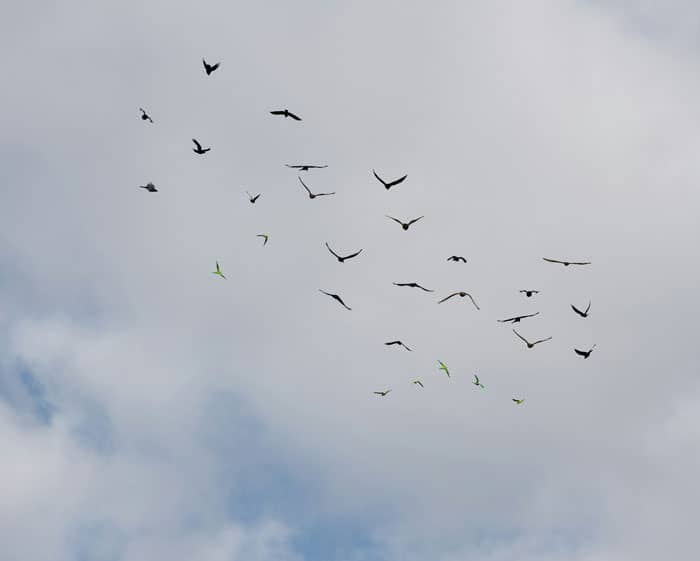 I was a c-141 navigator for my first AF assignment. We were flying a group of families moving back to the US from Japan. As we were in the approach at Travis Air Force base we had a massive multi bird strike. It sounded like the world was ending inside the cockpit it was so loud. Shattered glass that was coated in blood and feathers, bent radome, you name it. Flight controls were fine but we declared an IFE and the co pilot could see well enough out his window to land and I and the FE were over his shoulder to help spot however We could and we landed without incident. The passengers deplaned and even complimented us on the great flight. I will never forget the right side of the passenger bus driving away and the look of horror on those people’s faces when they saw what the front of that airplane looked like.