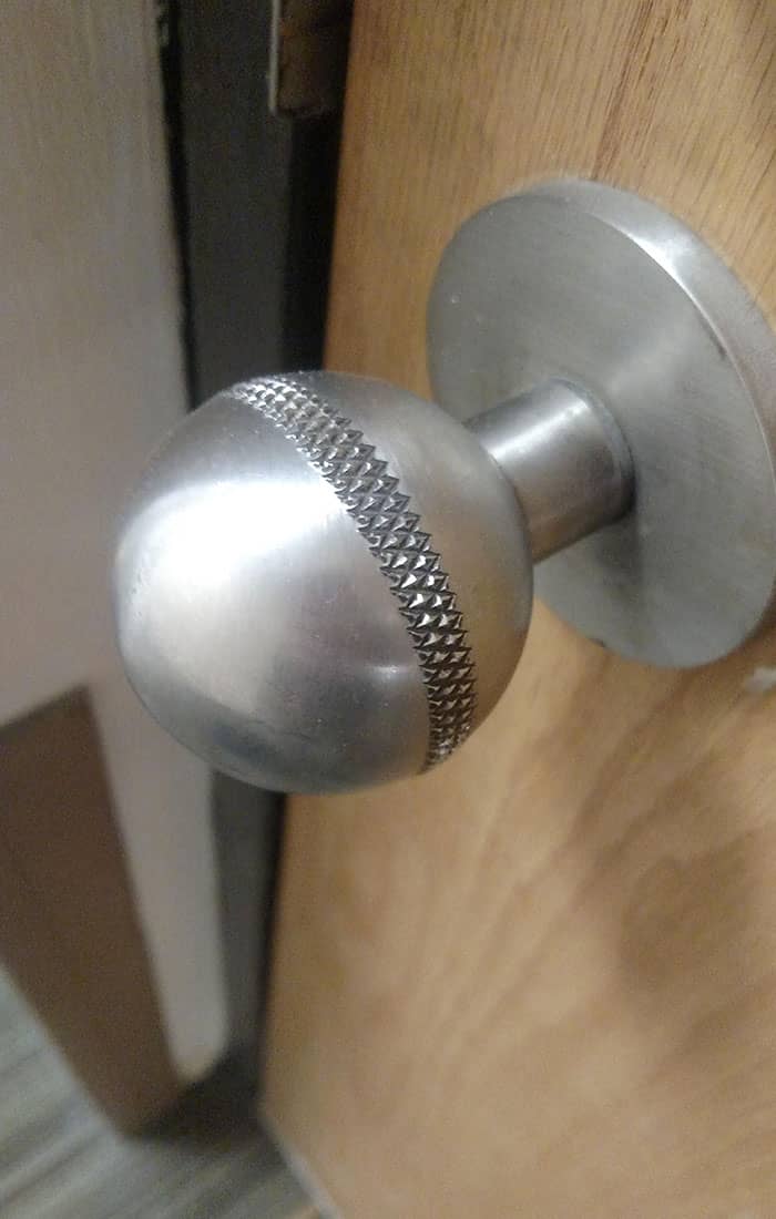#61 This Doorknob For A Maintenance Closet At My School Has Knurling On It To Prevent Slipping When Workers Have Gloves On