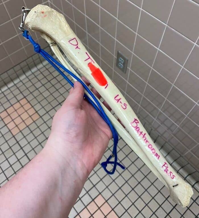 #69 My Anatomy Teacher’s Bathroom Pass Is A Human Leg Bone