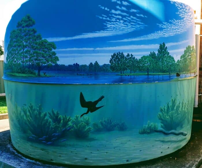 #51 This Artwork On A Rainwater Tank At My Daughter’s School Uses The Seam In The Middle As Part Of The Art, With A Convincing Effect