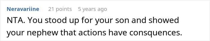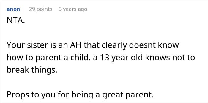 Commenters sided with the parent, pointing out how the sister and the nephew were both acting unreasonably