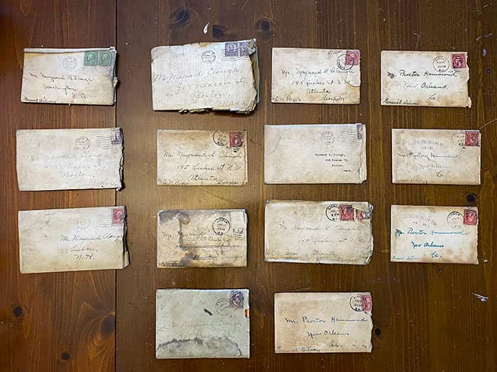 My wife and I are trying to read through them and create a timeline. It seems like an affair, as the house owner was a married man, but these are definitely love letters. Some letters explicitly said to destroy, which he apparently disregarded. Letters were hidden on the first-floor joist, accessible only from the basement.