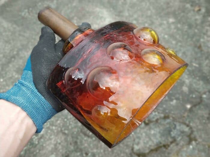The handle is sealed tight with the glass, and there’s a small hole at the bottom, just about an inch deep. It would make sense if it was used as a cover, but I would imagine it to be circular, not oval-shaped.