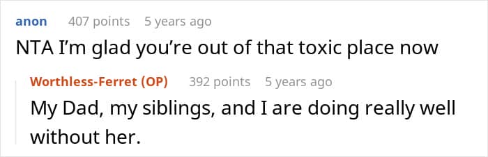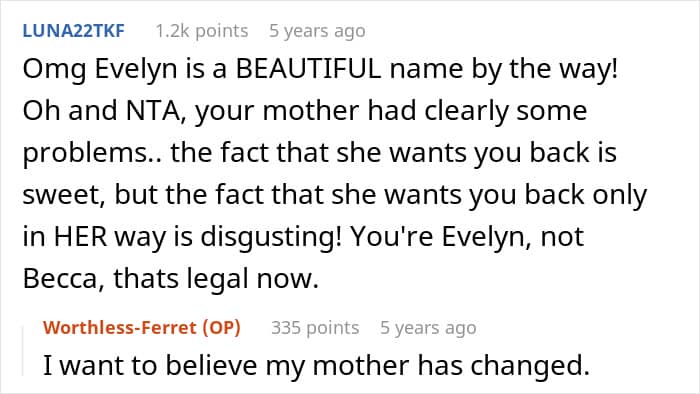 So, unsurprisingly, she eventually decided to change it. But that, among many other things, didn’t sit well with her mom, who threatened to cut the girl out of her life if she did.