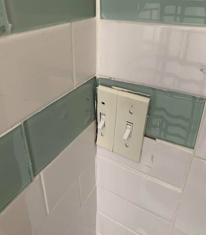 During the installation of the soap case and new taps, plumber accidentally drilled into a pipe, causing the wall to flood from the inside. To rectify the situation, it took an extra hour and broken tile which he charged me for. Also, I forgot to mention that he put in this abomination of a tile instead of matching the original design.