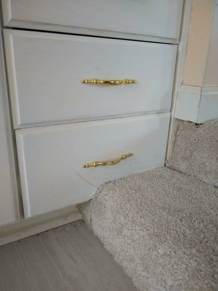 #60 This Remodeled Bathroom With A Carpeted Step Blocking A Vanity Drawer