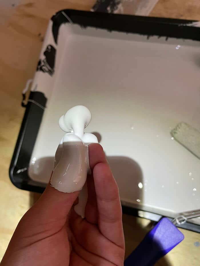 Sealing up some gaps in the under stairs cupboard after a recent mouse infestation. Didn’t realise I had smooshed my head into the foam for over an hour, by which time it had almost fully cured.