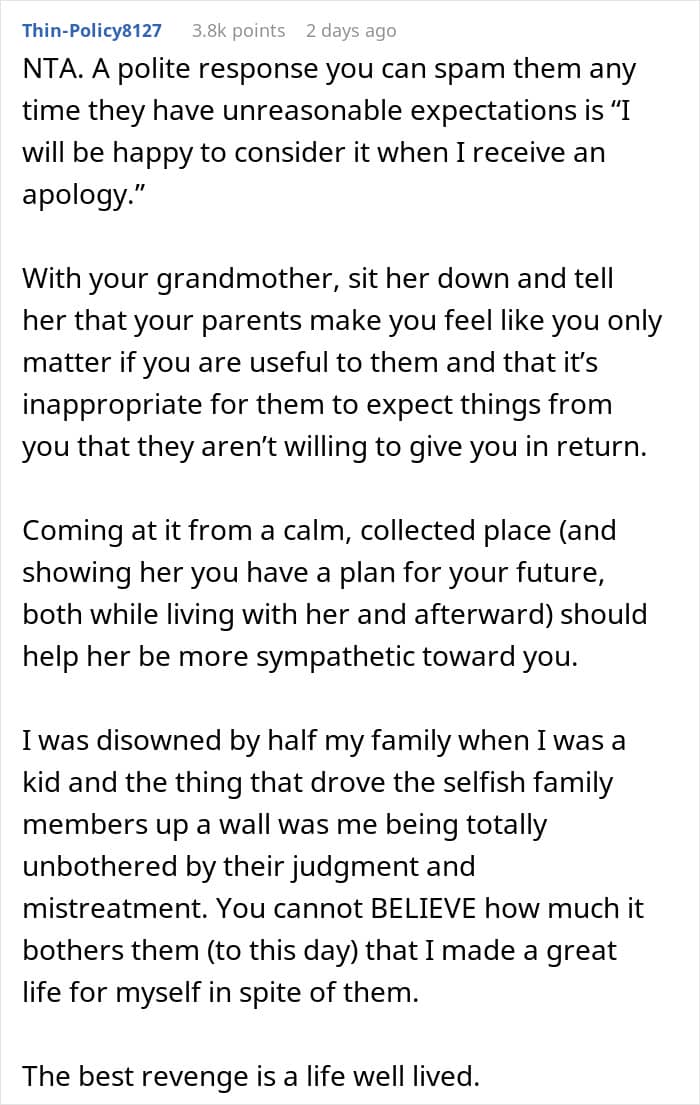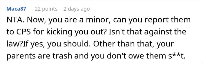 These parents have decided to lead with a more authoritarian style, demanding respect and imposing strict rules and punishments if they aren’t followed. Recently, their teen shared how they reached a breaking point after he delayed vacuuming the living room for which (in addition to other things) he was kicked out of the house.