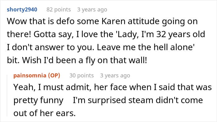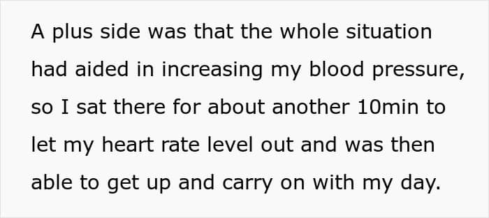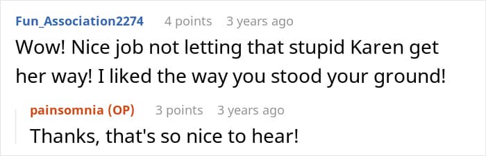 Even worse, from her point of view, this was a child, so to a third party, it would look like this woman was attacking and cursing at a teenager who was just sitting in a chair. Unfortunately, none of the folks around stepped in and did anything until staff got involved. While it’s a bit cowardly, many people do not want to deal with a delusional person willing to attack someone in public. A lot of entitlement could perhaps be solved just by treating them more firmly.
