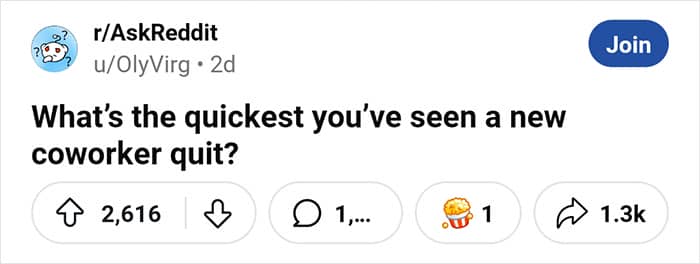 Redditors have recently been sharing stories of employees who quit just as quickly as they started new jobs, so we’ve gathered some of the most entertaining tales below. Enjoy scrolling through these examples of extremely quick quitting, and keep reading to find a conversation with career coach Twanna Carter, PhD!