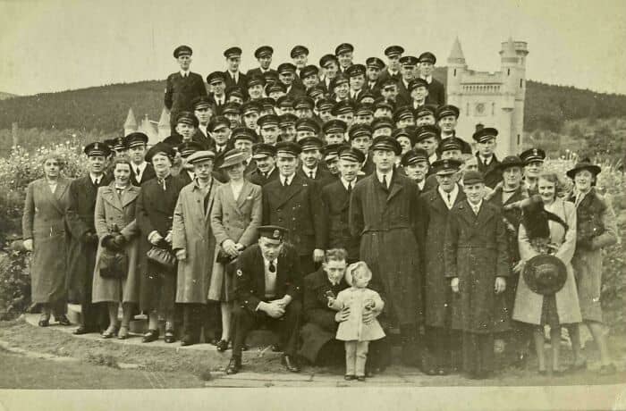 During WW2 he was training at Kingseat Hospital, New Marchar and we think this a photo of a day out with other trainees at the hospital. I don’t have much more contact to provide, unfortunately, although the castle looking tower in the background should help?!
