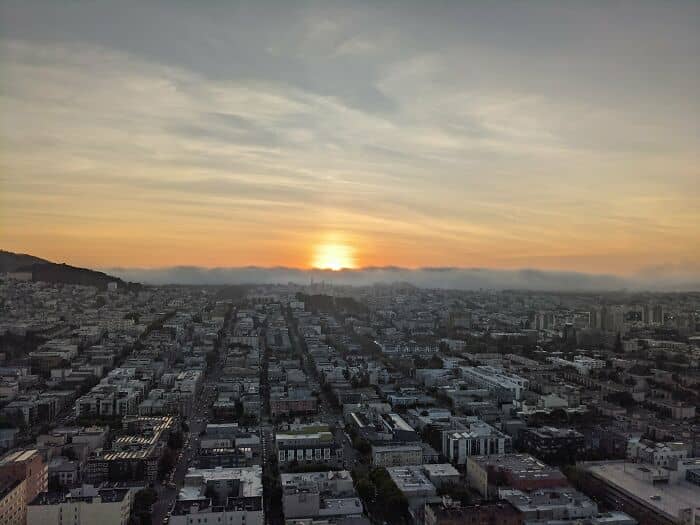 The hill on the left is Buena Vista Park and two blocks to the right of that you can see the panhandle of Golden Gate Park.