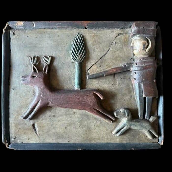 #59 An Early 20th Century Folk Art Relief Carving Of A Hunting Scene