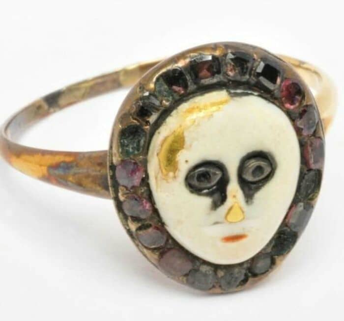 #65 19th Century Ring Featuring A Stylized Enamel Skull On The Head, Surrounded By A Ring Of Garnets. Collection Of The Maryland Center For History And Culture
