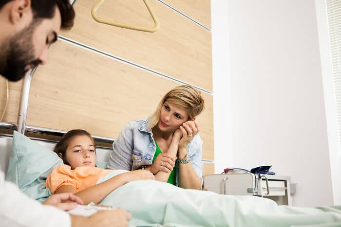 He got pissed off at me because he thought I was being a smart. He got seen and diagnosed with gastroenteritis (the stomach flu). The bloody stool? He had hemorrhoids.
