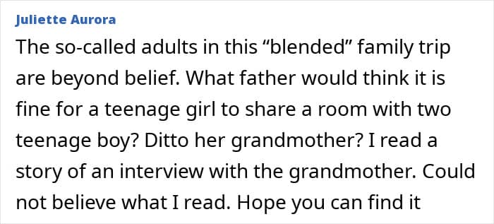 Many people questioned the adults on the trip for having Anna share a room with the teenagers