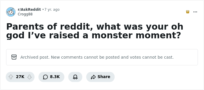 Someone asked “Parents, what was your oh god I’ve raised a monster moment?” and people shared their stories. Be warned, some are a bit disturbing. So get settled in as you scroll through, upvote your favorites and be sure to add your thoughts and reactions to the comments section down below.