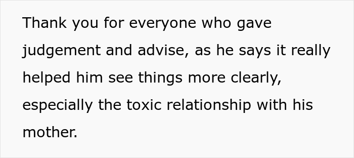 According to the OP’s partner, the habit of putting a load of housework on his wife started when the family moved in with his parents for a bit. His mom apparently played an important role in him believing that the woman is the one who should take care of him. Soon, the man got stuck dreading everyday life where his job “wasn’t stimulating enough” and his family couldn’t figure out what was wrong. But the woman shared that they did what needed to be done, meaning that her partner decided to stop communicating with his toxic mother, left his job to find a better one, and, most importantly, started spending more time with his family.