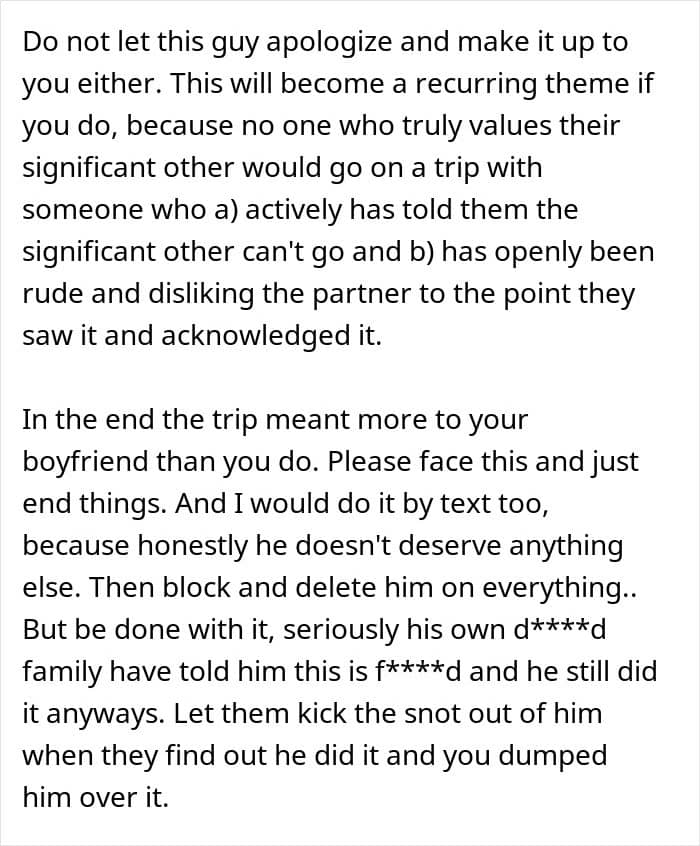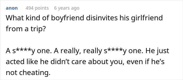 “What kind of boyfriend disinvites his girlfriend from a trip?” people wondered in the comments