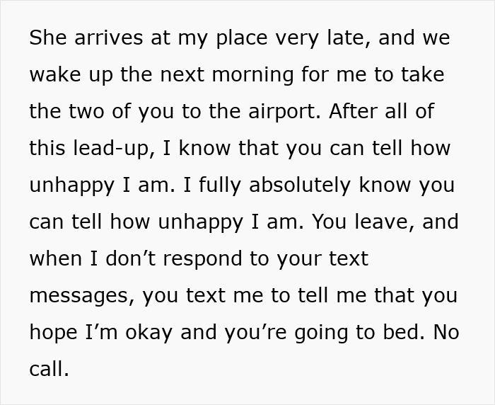 After the boyfriend left for his flight, the woman wrote him a lengthy breakup email