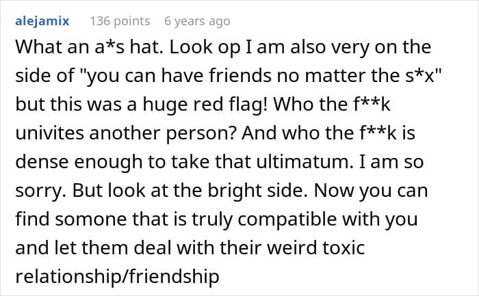 However, for this couple, the boyfriend’s female best friend was the catalyst for their breakup. After the woman was uninvited from a week-long vacation so that her boyfriend could go on holiday with his female bestie, she had had enough. “I am not happy in this, and I do not want to feel these feelings any longer,” she wrote in a revealing email she sent to her BF.