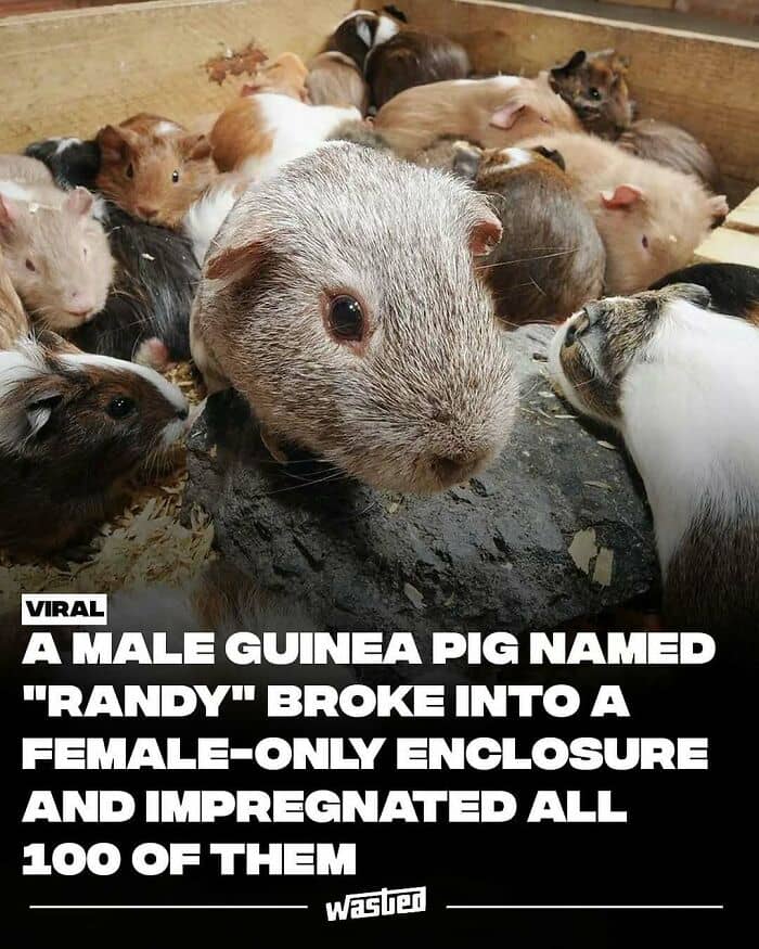In 2014, staff at Hatton Country World in Warwickshire were left stunned after their female guinea pig enclosure suddenly turned into a maternity ward. The culprit? A sly male guinea pig named Randy, who escaped his pen and infiltrated the female area. In just one covert visit, Randy is believed to have impregnated as many as 100 sows, each capable of producing up to four pups—setting the sanctuary up for a massive baby boom.