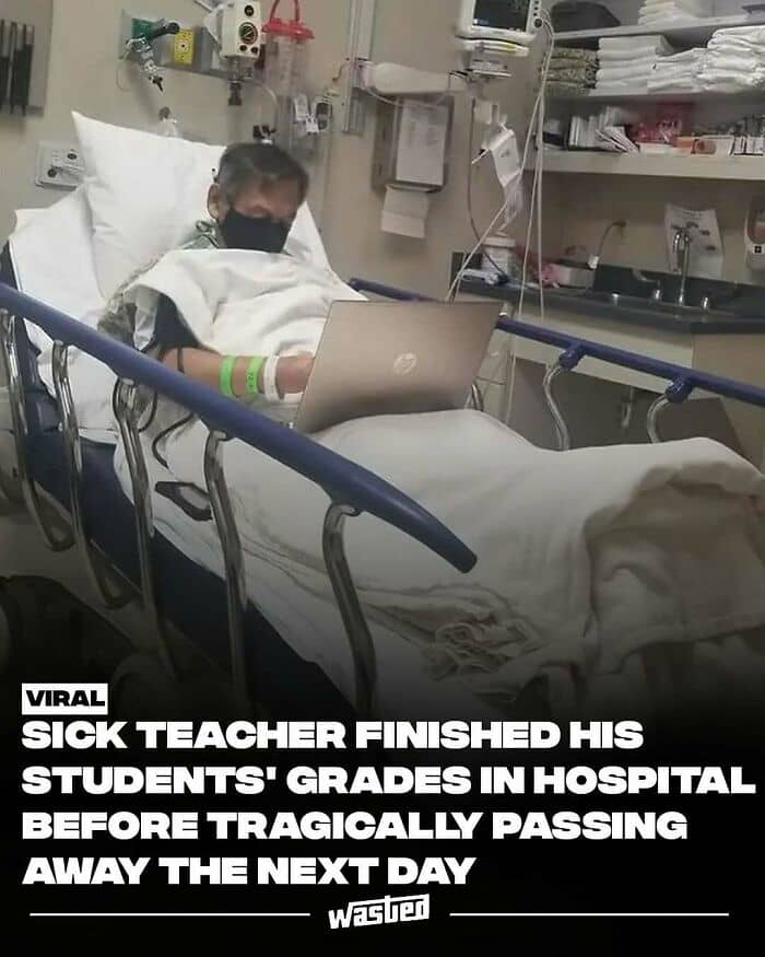 Math teacher Alejandro Navarro, from Del Rio, Texas, spent his final hours doing what he loved most—supporting his students. Even as he faced a serious health crisis, he brought his laptop and charger to the emergency room, determined to finish grading papers. According to his daughter, he completed every single grade before passing away the very next day.