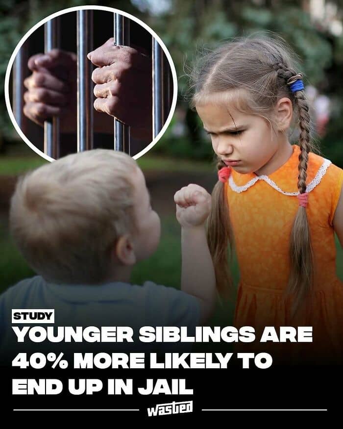 The research, led by MIT economist Joseph Doyle, analyzed data from families in the U.S. and Europe. It revealed that second-born children are 25 to 40 percent more likely to get into trouble at school or with the law.
