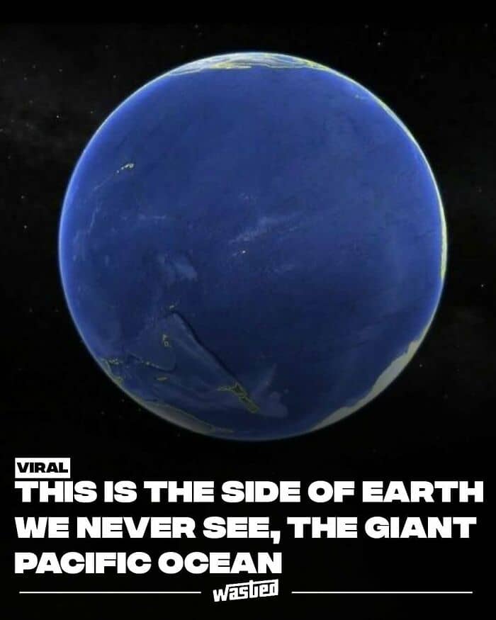 Seen from this rarely shown angle, the Pacific Ocean commands nearly an entire hemisphere—spanning about one-third of Earth’s surface, or roughly 165 million km².