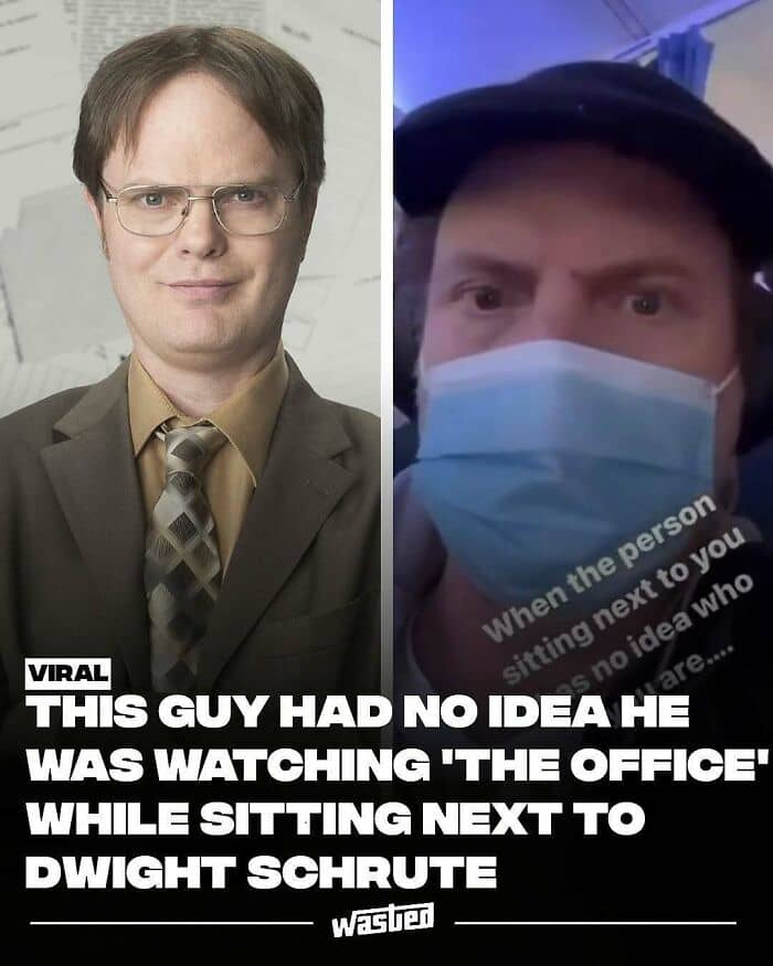 A passenger unknowingly sat next to Rainn Wilson on a flight while watching The Office.
