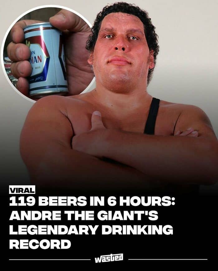 André the Giant’s legendary drinking feats are as awe-inspiring as his stature. Standing at 7’4″ and weighing over 500 pounds due to acromegaly, his immense size contributed to an extraordinary alcohol tolerance. One of the most renowned tales recounts André consuming 119 beers in a single six-hour session—averaging a beer every three minutes. This event reportedly concluded with André peacefully sleeping it off in a hotel lobby, covered with a piano tarp by his companions who couldn’t move him .