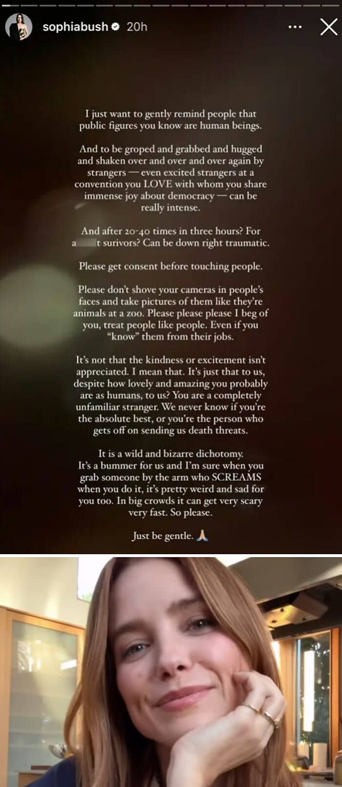 #1 Sophia Bush Posted A Statement On Her Instagram Story Asking To “Please Get Consent Before Touching People” And “Treat People Like People, Even If You ‘Know’ Them From Their Jobs”