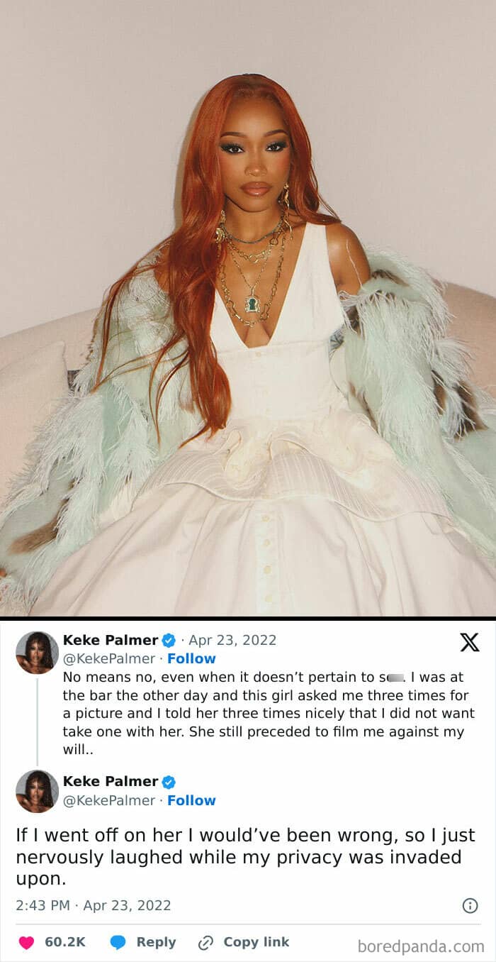 Keke Palmer took to X to explain an incident where she was filmed without her consent after declining a photo request three times. Palmer emphasized that “no means no,” even for celebrities, and highlighted the importance of respecting personal boundaries in public interactions.