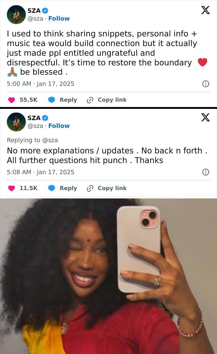 #24 SZA Tweets That It Is Now Time To Restore The Boundary Between Her And Her Fans