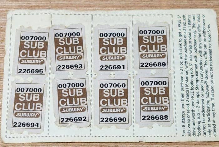 I used to buy rolls of Subway Stamps on eBay for like $100. I think you could get 125 footlongs with a roll. Really wish they didn’t get rid of that program!