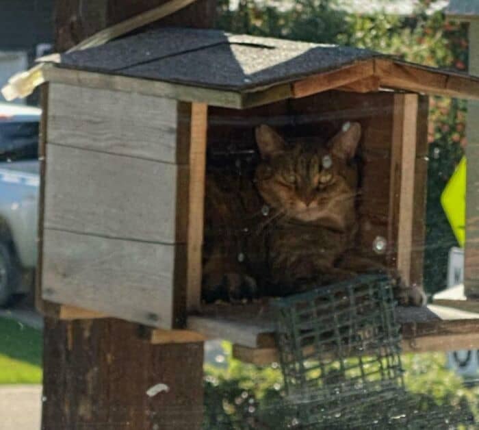 #38 Found Our Indoor Cat Outside This Morning In The Birdhouse