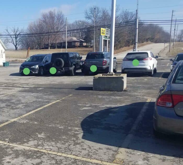 #83 Step 1: Pull Forward And Park In This Spot. Step 2: Car Pulls In Behind You. You Are Now Stuck