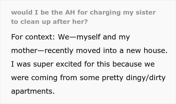 However, the poster finally lost it after she spotted 4 roaches in the house! Considering her severe anxiety and paranoia about bugs, her meltdown was completely understandable. Unfortunately, they couldn’t hire an exterminator as her sister had racked up bills by overusing all the utilities. Well, OP was considering charging her a clean-up fee, so she vented online.