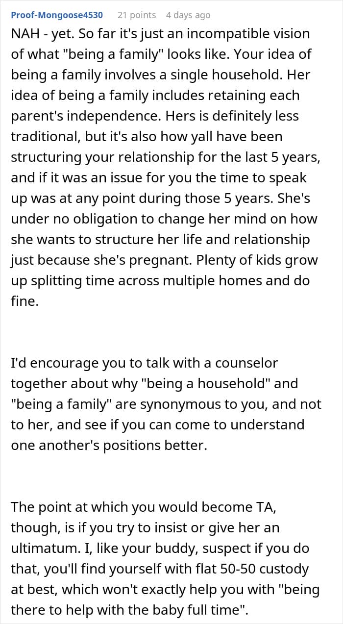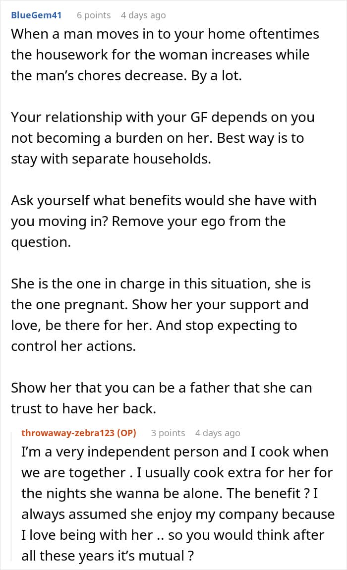 That’s the frustrating situation that one man found himself in. He turned to the internet for advice after insisting that his girlfriend move in with him now that she’s pregnant. When she refused, he decided to get to the bottom of the mystery. Scroll down for the full story, including a very painful twist in an update.