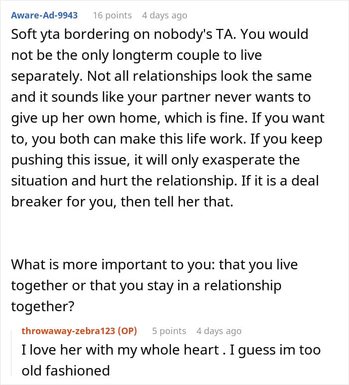RELATED:It’s going to raise some eyebrows and ring some alarm bells when people see that your long-term partner refuses to move in with you