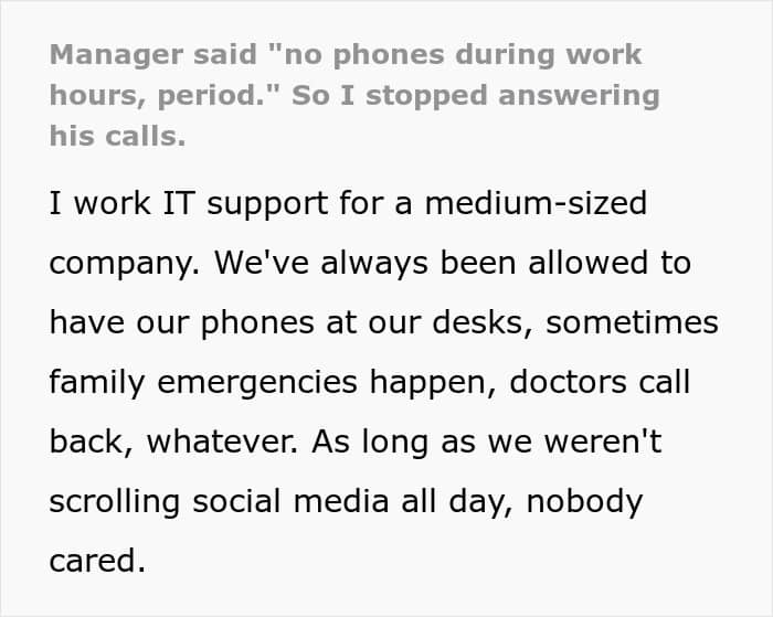 A netizen shared their story of malicious compliance when their boss passed a “no phones at work” rule without thinking of the consequences. So when servers went down, suddenly a minor problem became a larger mess. We reached out to the IT worker who posted the story via private message and will update the article when they get back to us.