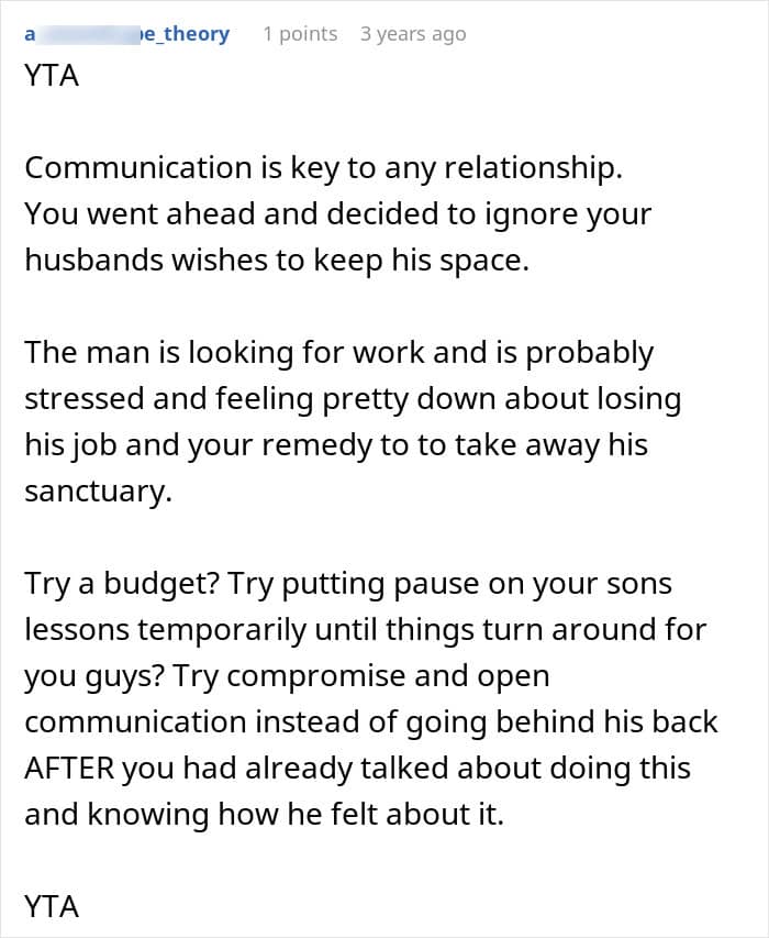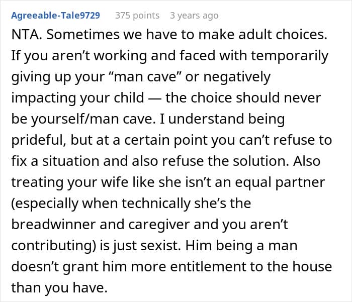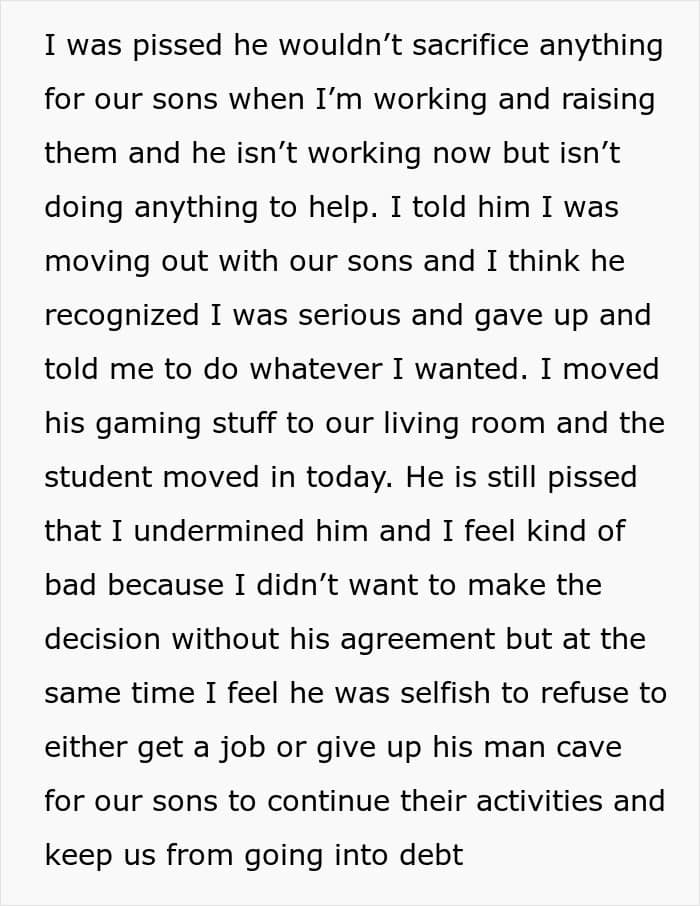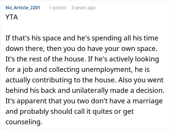 Husband Loses It After Wife Rents Out His Man Cave, Because He Won't Get A Job: "It Would Be Humiliating"